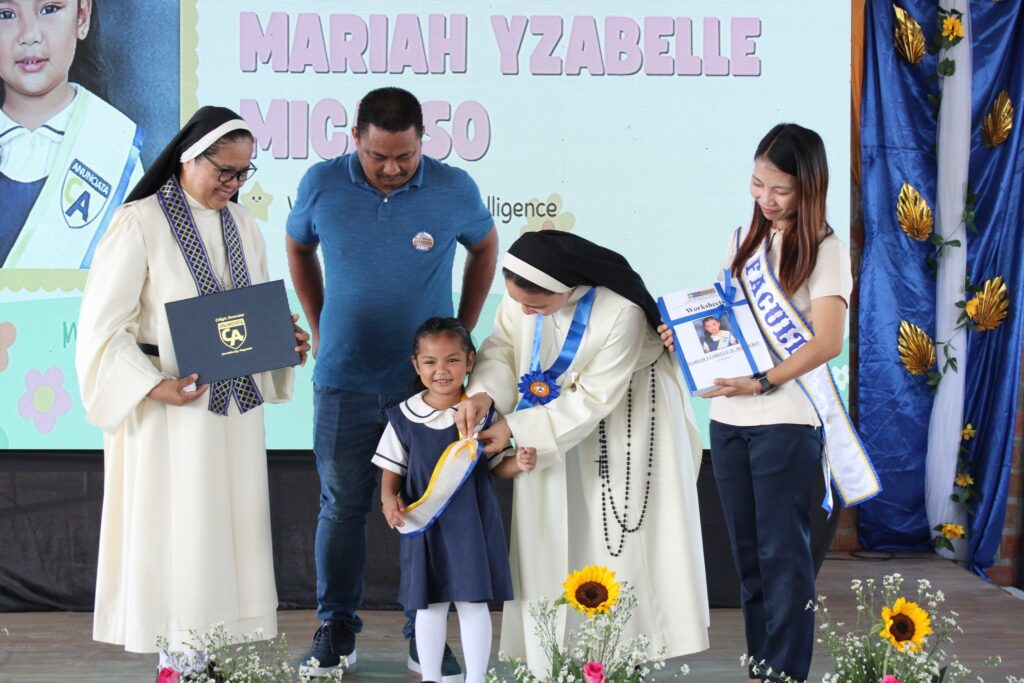 Por la tarde se celebraron la 8ª ceremonia de graduación de 6º de Primaria y la 5ª ceremonia de promoción de Secundaria (7º a 10º). En representación de la Hermana Jocelyn, participó la Hermana Joanne U. Ocal, OP. Durante el evento se reconocieron los logros académicos y personales de los alumnos, destacando el premio a los “Model Students”, otorgado a quienes sobresalieron por su conducta, disciplina y excelencia académica.