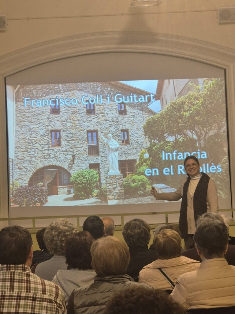 A fi de donar a conèixer més la figura del P. Coll a la seva comarca natal, es va convocar a Ripoll, el divendres 3 de maig a les 20,00h. i al Centre parroquial, a una conferència a càrrec de la Gna. Luciana Farfalla que la va desenvolupar amb saviesa i profunditat, com sap fer ella, i al mateix temps amb senzillesa i molt adaptada al públic a qui anava dirigida. Hi vam participar una cinquantena de persones.